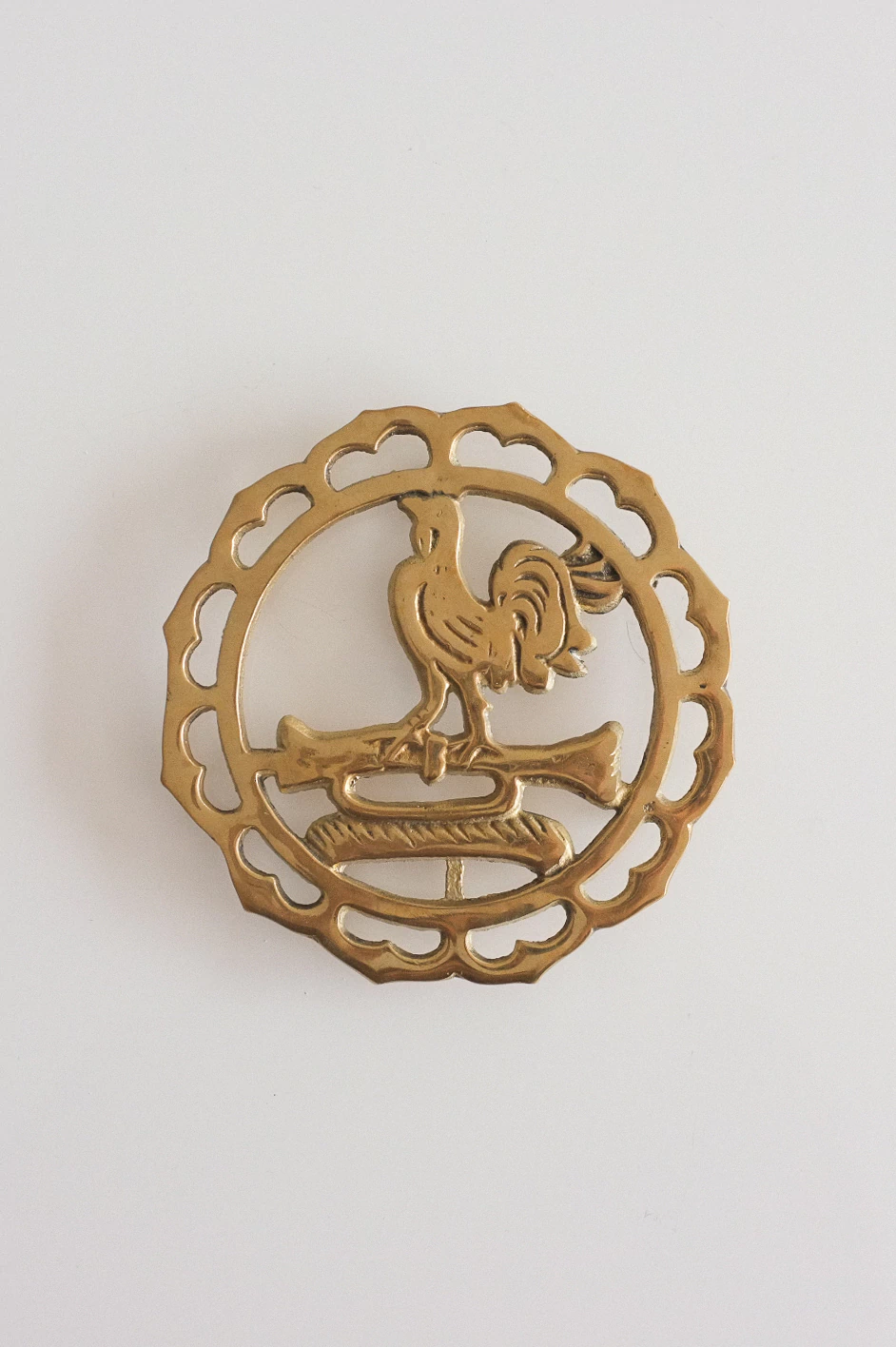 - Diseño: Apoya pava de estilo fabricado en bronce pulido con diseño gallo.