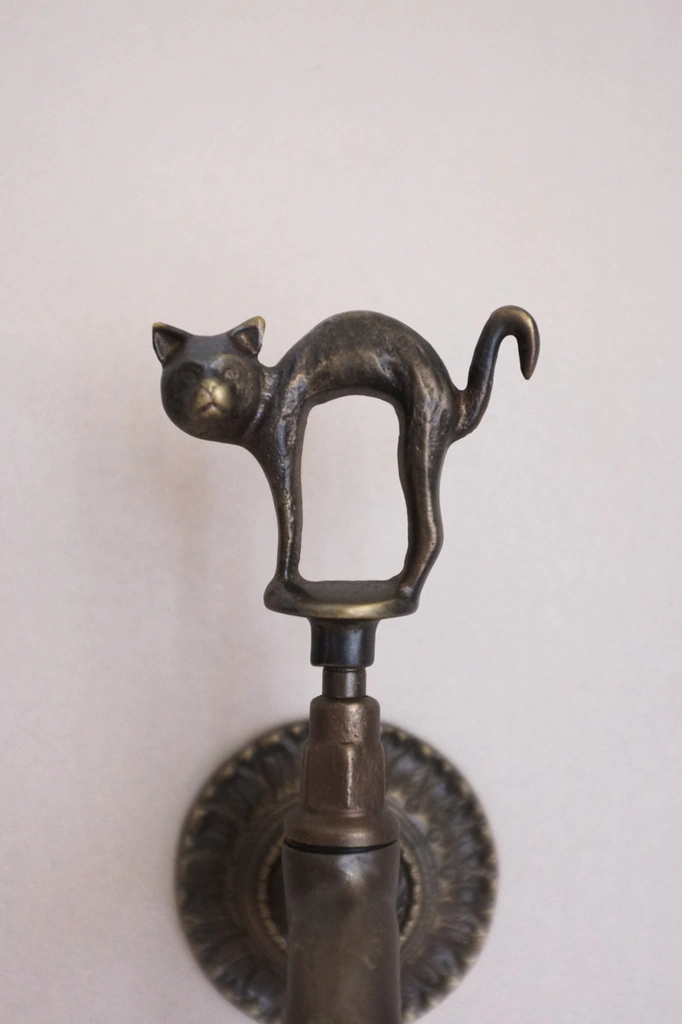 Canilla de exterior con diseño gatito fabricada en bronce florentino.