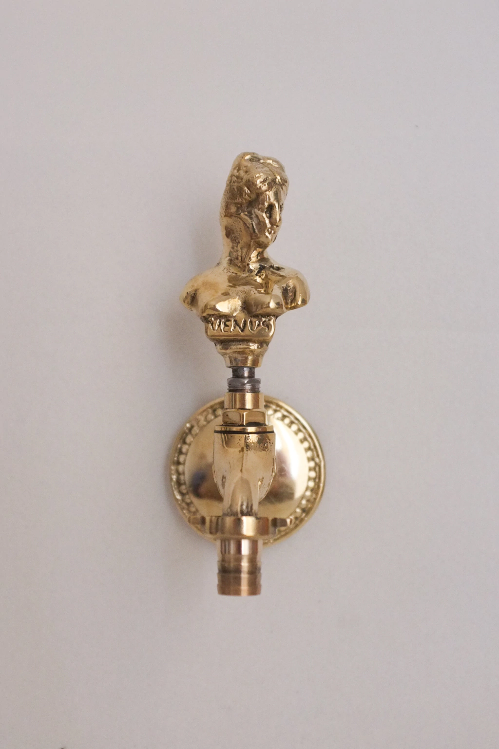 Canilla de exterior con diseño venus fabricada en bronce pulido con laca.