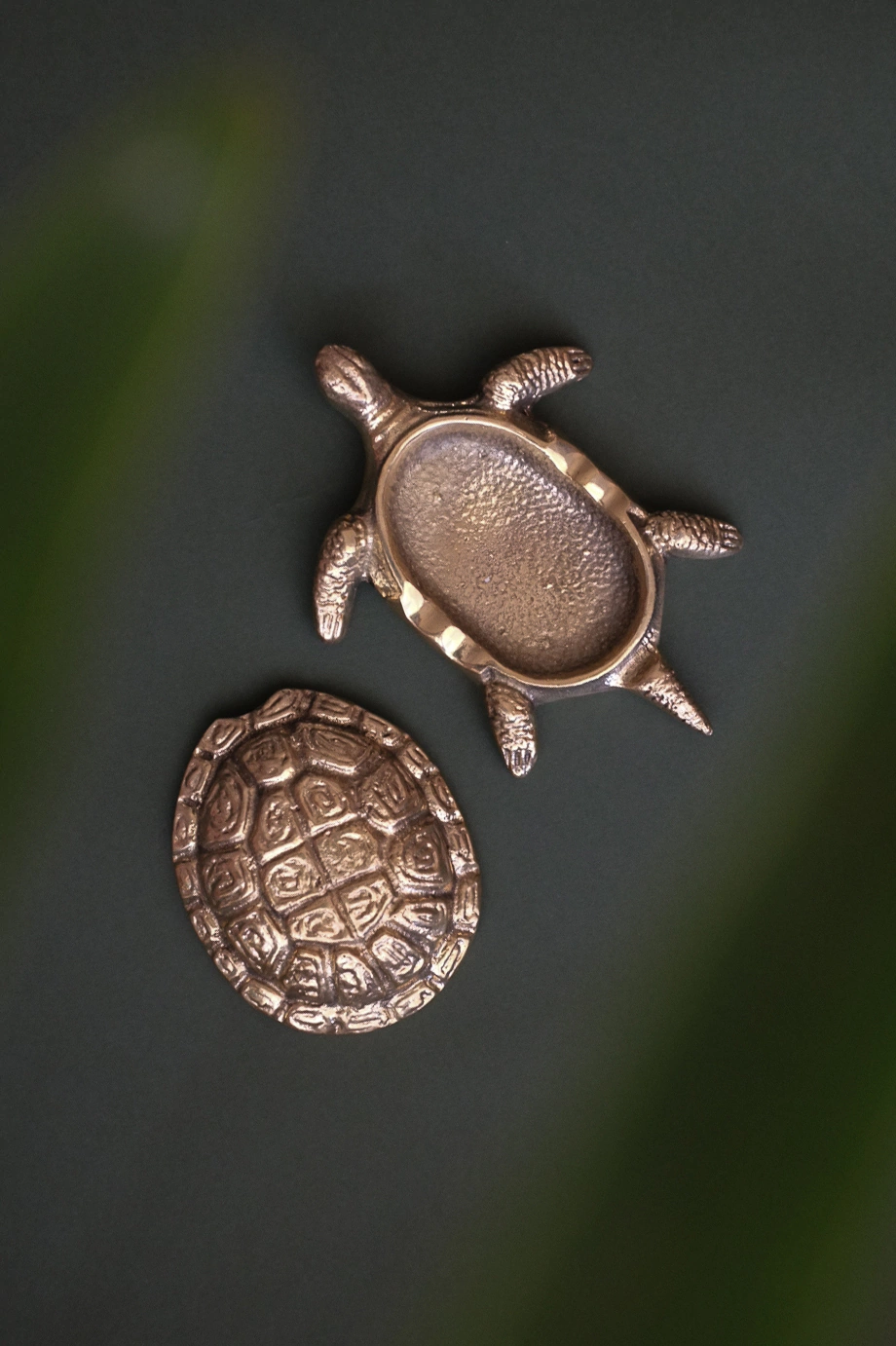 Cenicero con diseño de tortuga fabricado en bronce pulido con laca.
