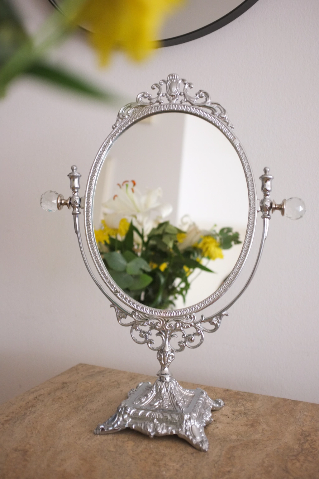 ESPEJO DE ESTILO CON CRISTAL ISABELINO ~ CROMO BRILLANTE