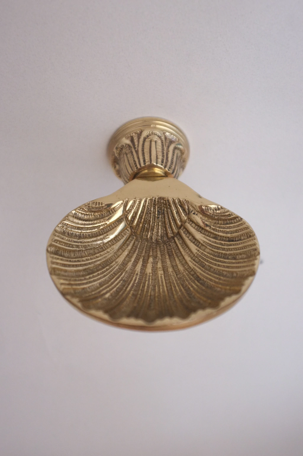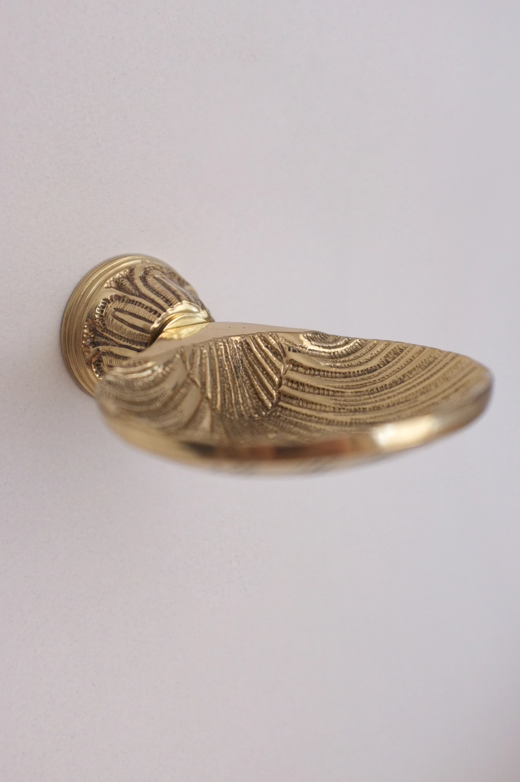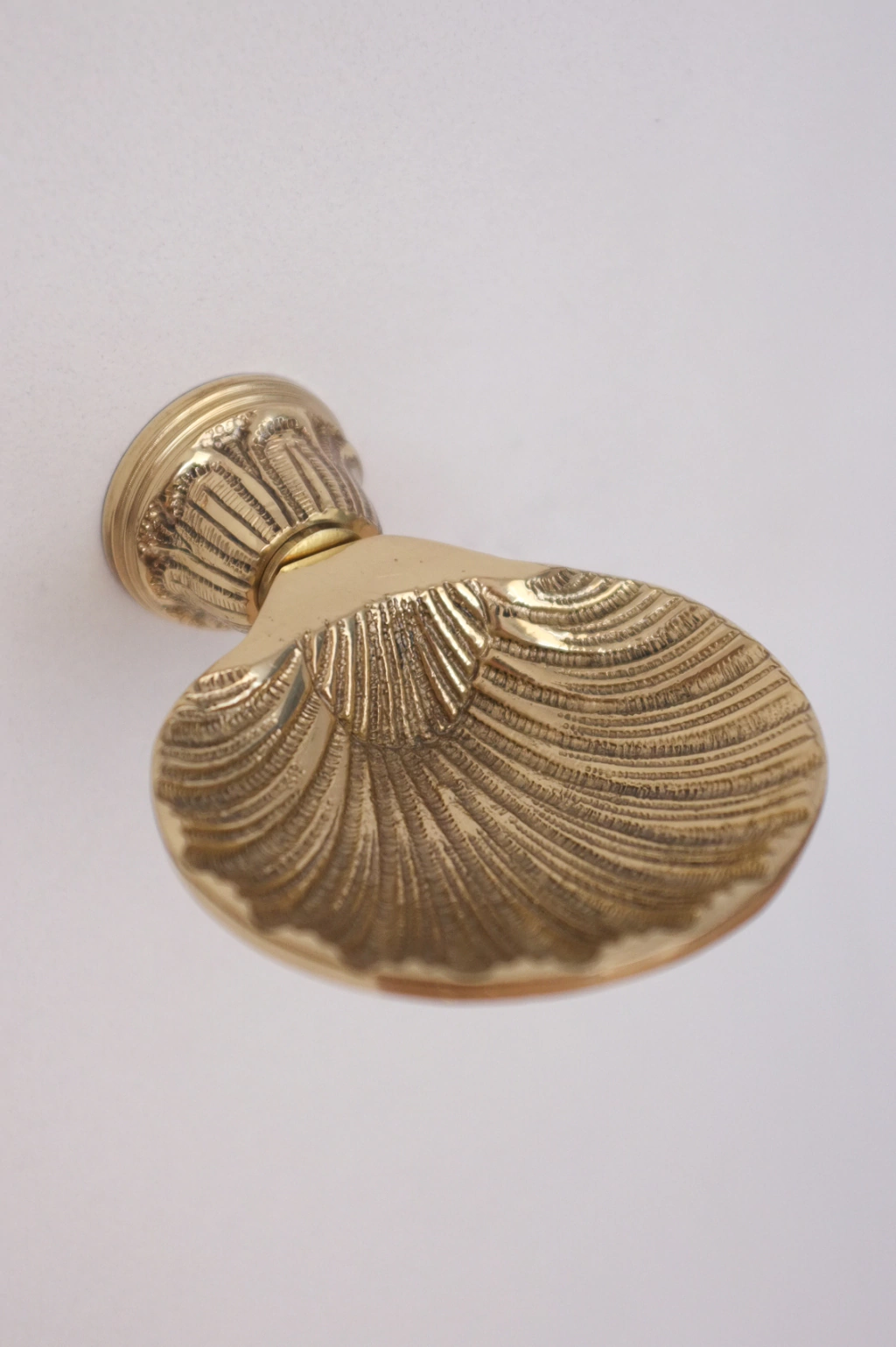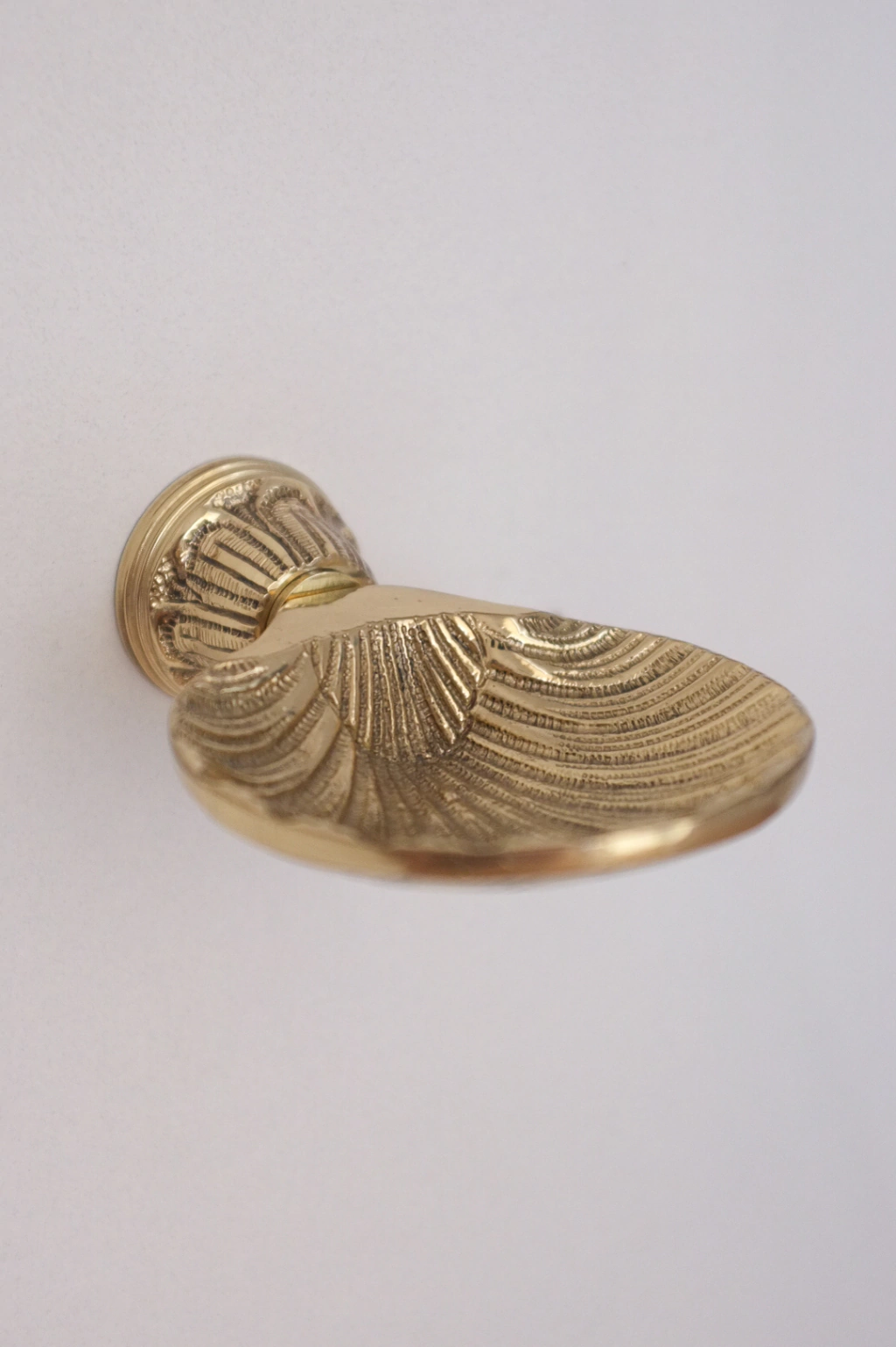 Jabonera de pared fabricada con base de estilo y diseño ostra en bronce pulido.