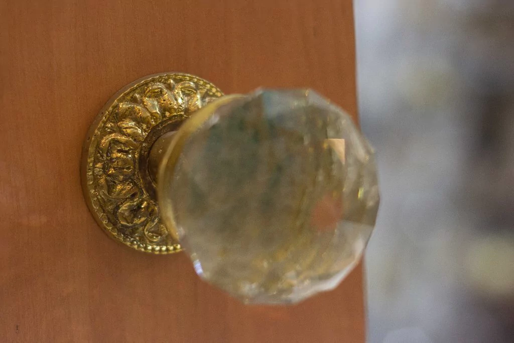Pomo de cristal de vidrio esmerilado con base de bronce de estilo