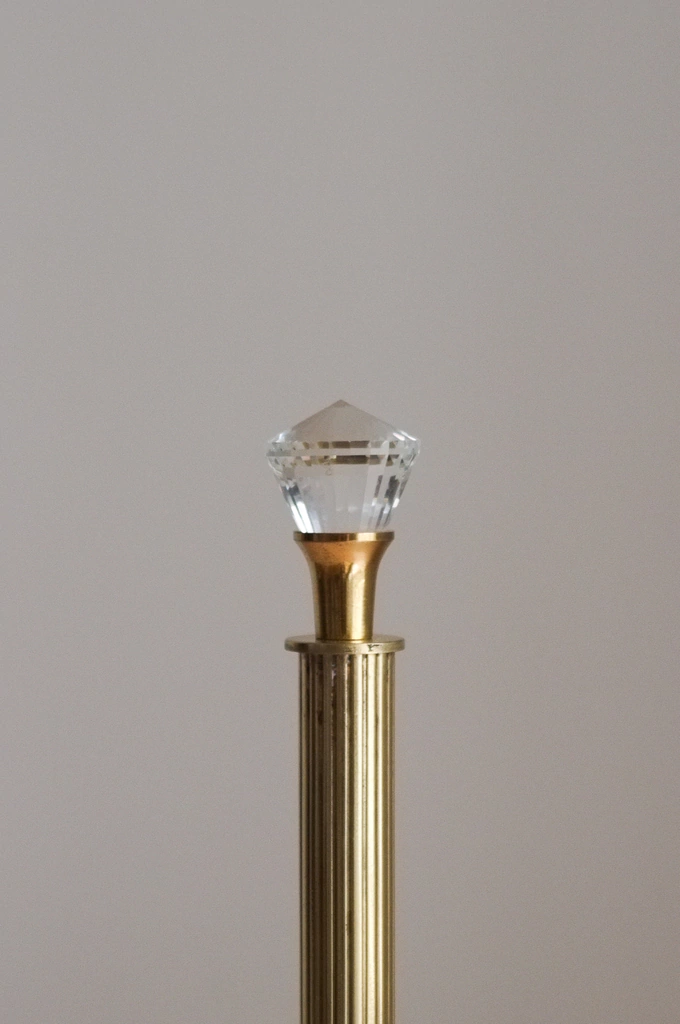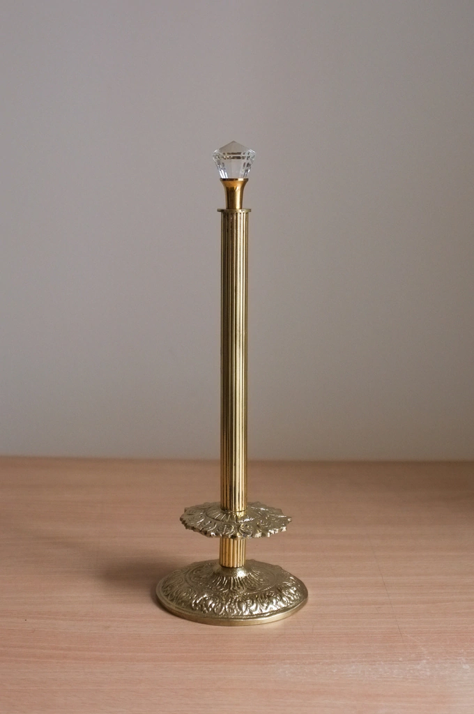 Porta rollo de cocina fabricado con doble base de estilo, caño rayado en bronce pulido y terminación en cristal facetado.
