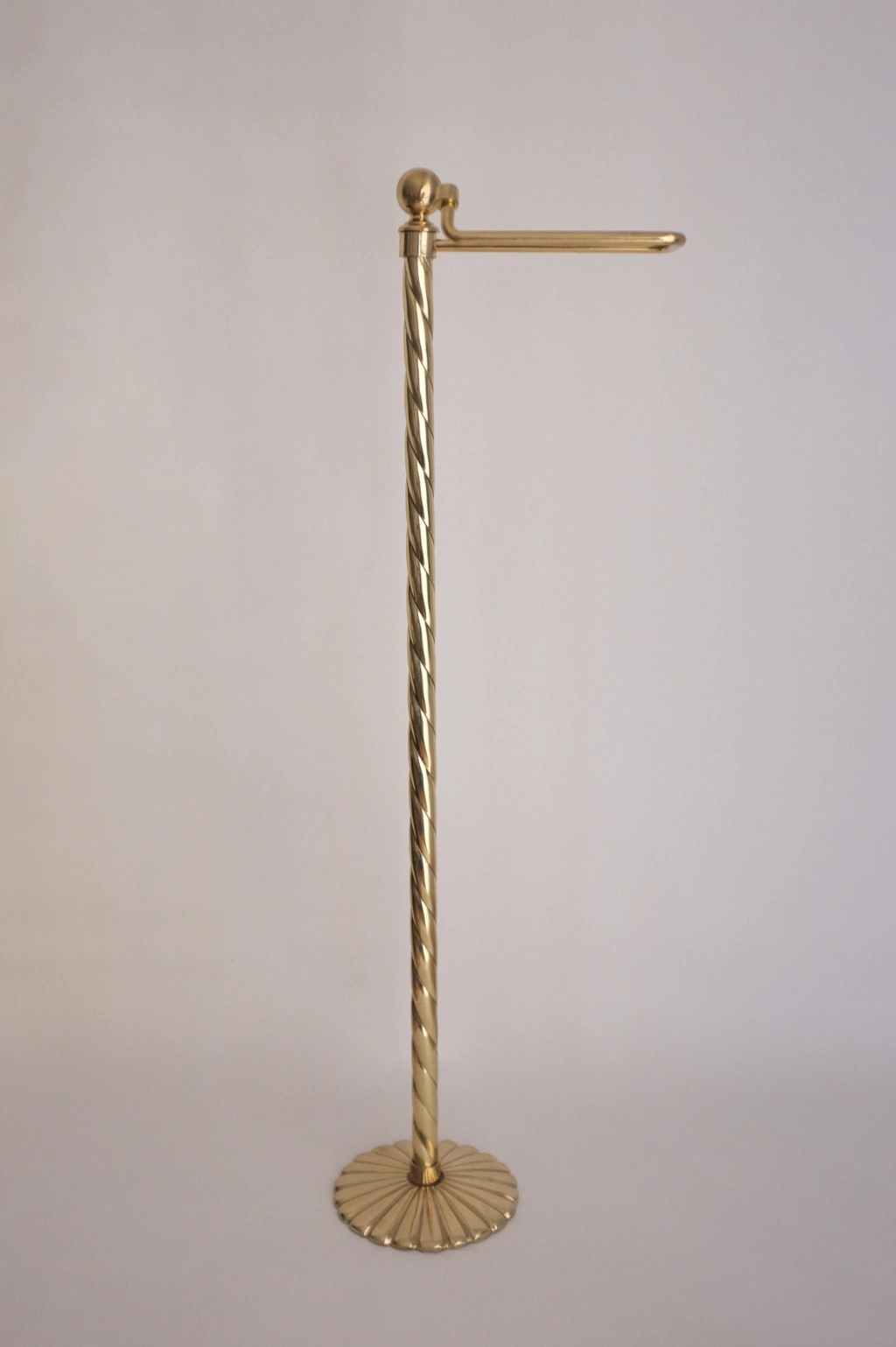 Porta rollo de pie fabricado con base de estilo gajo trabajado en bronce pulido con laca.