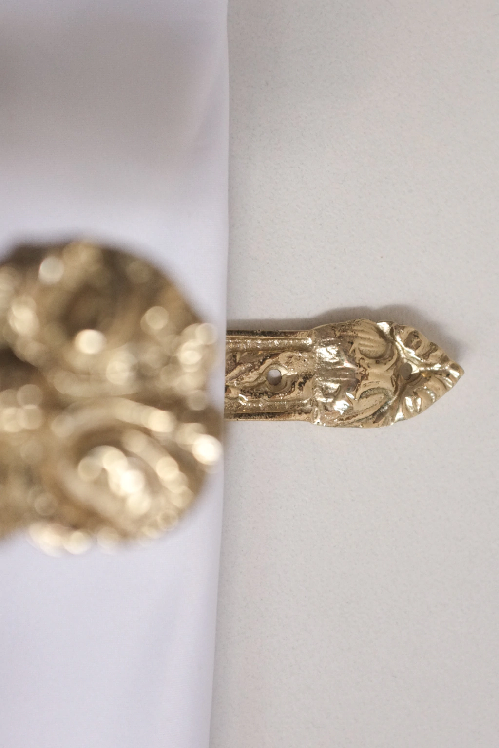 Soporte de cortina fabricado artesanalmente en bronce pulido.